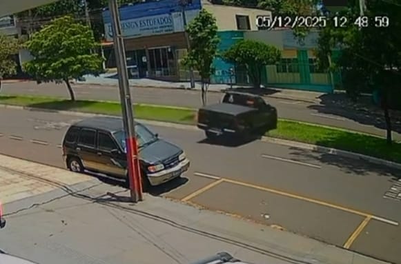 Imagens de uma câmera de segurança registraram dois acidentes em sequência na tarde desta sexta-feira (05) na Avenida Doutor Alexandre Rasgulaeff, em Maringá. Nas imagens, é possível ver o momento em que a condutora de uma Fiat Toro tenta cruzar a avenida e acaba entrando na frente de uma caminhonete que seguia pela via.