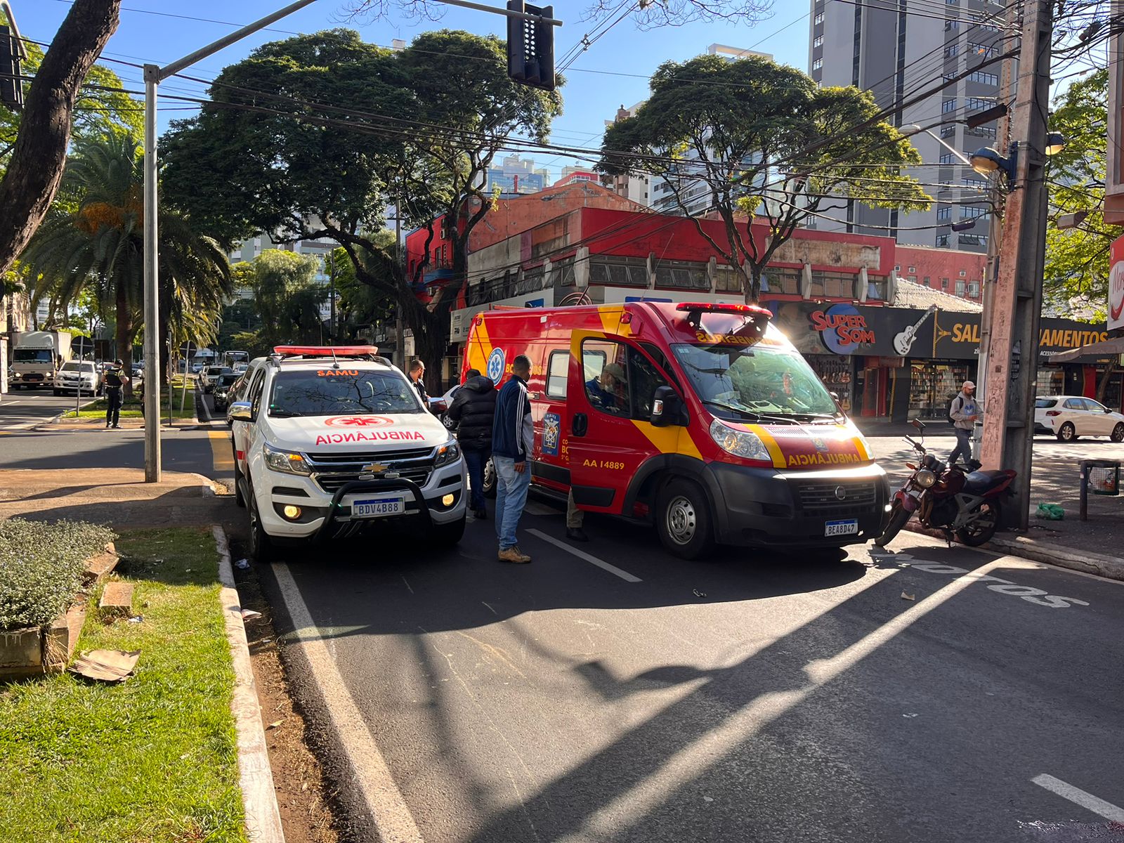 Um homem ficou ferido após ser atropelado por uma moto no início da manhã desta segunda-feira (28), no Centro de Maringá.