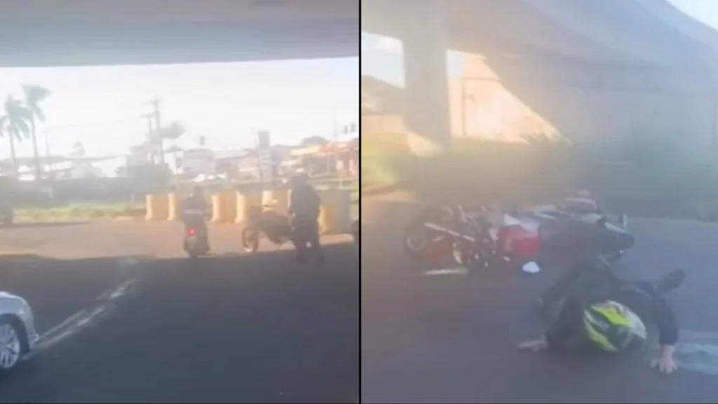 Apesar do susto, o motociclista não sofreu ferimentos graves. Os vídeos passaram a circular em grupos de WhatsApp e chamaram a atenção para o risco de acidentes no trecho. Até o momento, não há informações oficiais sobre a origem do óleo.