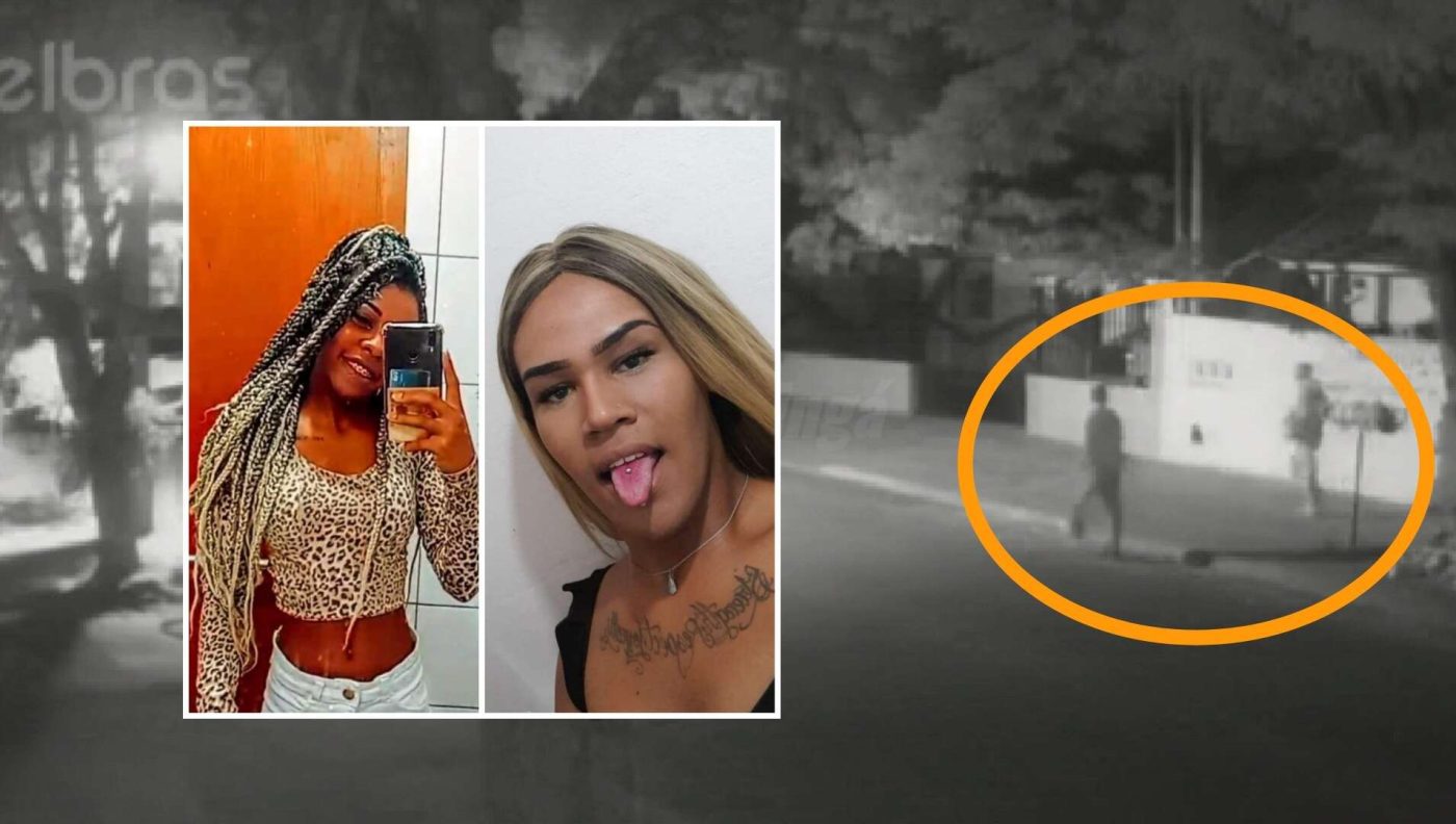 Uma câmera de segurança gravou os suspeitos de ser os executores de Janine Naomi Ferreira dos Santos, de 20 anos, e da travesti Jean Vinícius Inácio da Silva, de 18 anos, conhecida como Thainara Moraes, ocorrida na madrugada do último domingo (30), no bairro Conjunto Habitacional Requião, em Maringá.,
